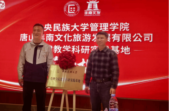 11月19日,中央民族大学管理学院与唐山丰南文化旅游发展有限公司在唐山市路南区唐山宴文旅酒店会议厅成功举行共建教学科研实践基地签约暨揭牌仪式。管理学院副院长车峰、研究生院副院长兼管理学院MTA教育中心主任彭建、管理学院教学办公室主任韦玉寒,凯歌儿集团副总经理兼唐山宴总经理魏永、副总经理金东升、宴有礼板块副总经理王锟、人力资源总监王彬等出席仪式,2025级MTA专业17名研究生共同参与了此次活动。