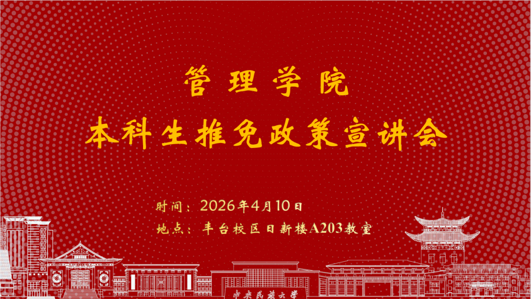 为深入贯彻学校人才培养理念,助力学生精准把握升学趋势,管理学院于4月10日在丰台校区日新楼203教室成功举办本科生推免政策宣讲会。本次宣讲会由学院团委、学生会主办,学习部承办,会议邀请的嘉宾有:学院副院长唐军旗、工商管理系教授谢作渺、教学科研办公室主任韦玉寒、学生工作办公室常务副主任李升。学院2023-2025级有推免意愿的140多名本科生参加了本次宣讲会。宣讲会围绕推免政策解析、实战经验分享、价值观引领与战略指导四大核心展开,通过全方位、多角度的推免政策解读,构建系统化分层指导体系,切实帮助同学们明晰政策要求,从而科学规划升学方向,为未来发展蓄力赋能。