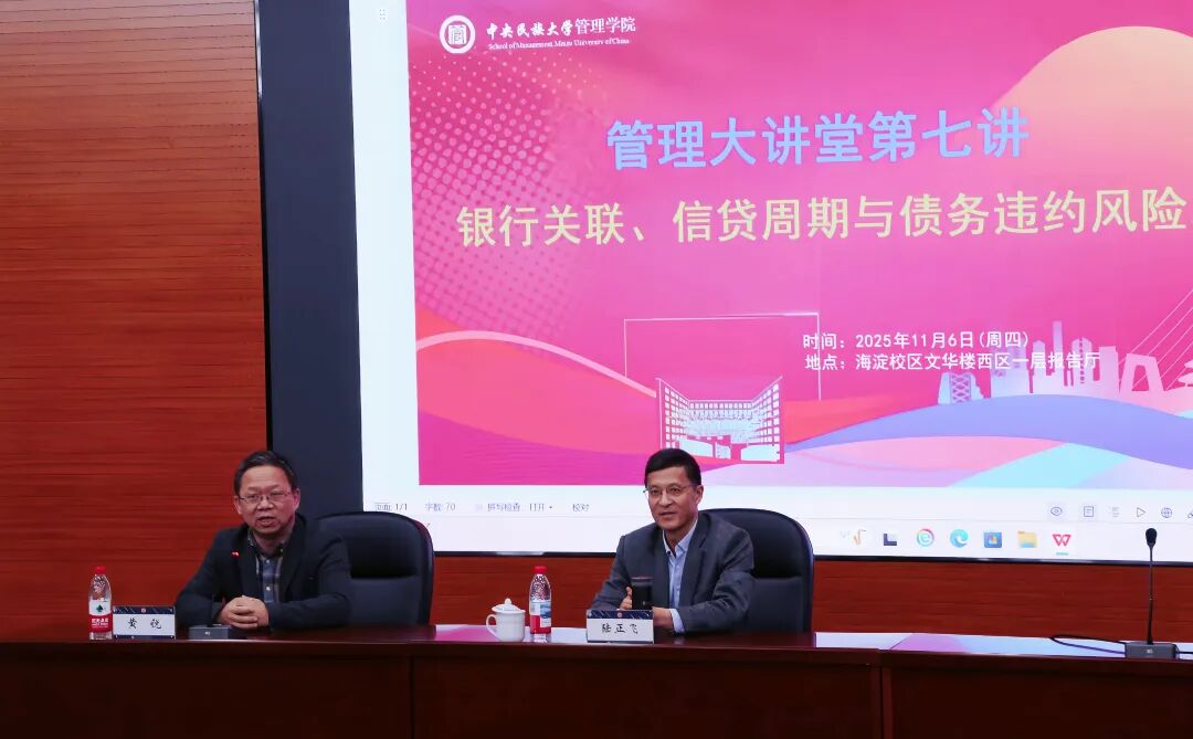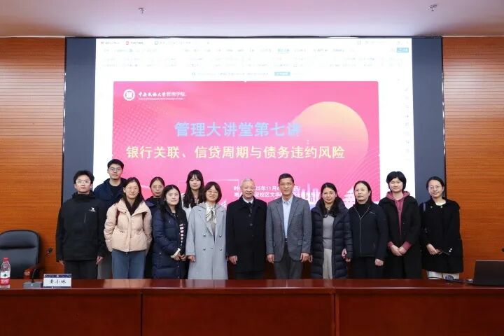 本次讲座聚焦“银行关联、信贷周期与债务违约风险”这一重要金融议题,通过陆正飞教授系统深入的分析与讲解,不仅帮助师生全面了解了金融风险研究的核心逻辑与实证路径,也启发了大家在新时代背景下如何以科学思维探索经济管理问题的思考。今后,管理学院师生将继续以严谨的学术态度和开放的研究视野,立足国家重大战略需求,聚焦经济金融领域的现实挑战,推动科研成果服务社会发展,不断为学校的“双一流”建设和高质量发展贡献智慧与力量。