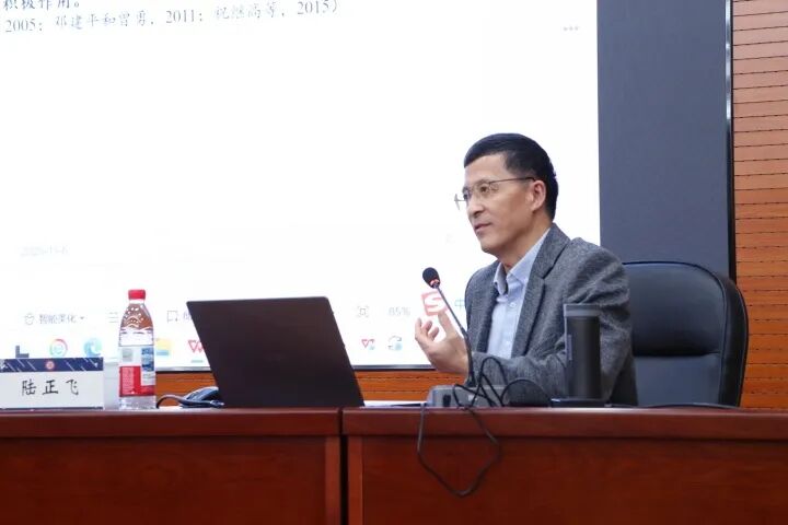 陆教授结合其研究成果《银行关联、信贷周期与债务违约风险》,系统阐述了从理论构建到实证检验的完整研究路径。他从银行关联的实践映射切入,引导师生培养“从现实中提炼学术问题”的具象思维;在分析信贷周期波动的实证观察时,强调“用数据验证逻辑”的实证思维;在讲解债务违约风险的精准研判时,倡导“多维度交叉验证”的辩证思维,层层剖析中既展示了严谨的学术逻辑,也为思维培养提供了具象指引。同时,他分享了自己的治学理念——立足现实找问题、深耕数据挖规律、回归实践验结论,让抽象的学术方法变得可感可学。